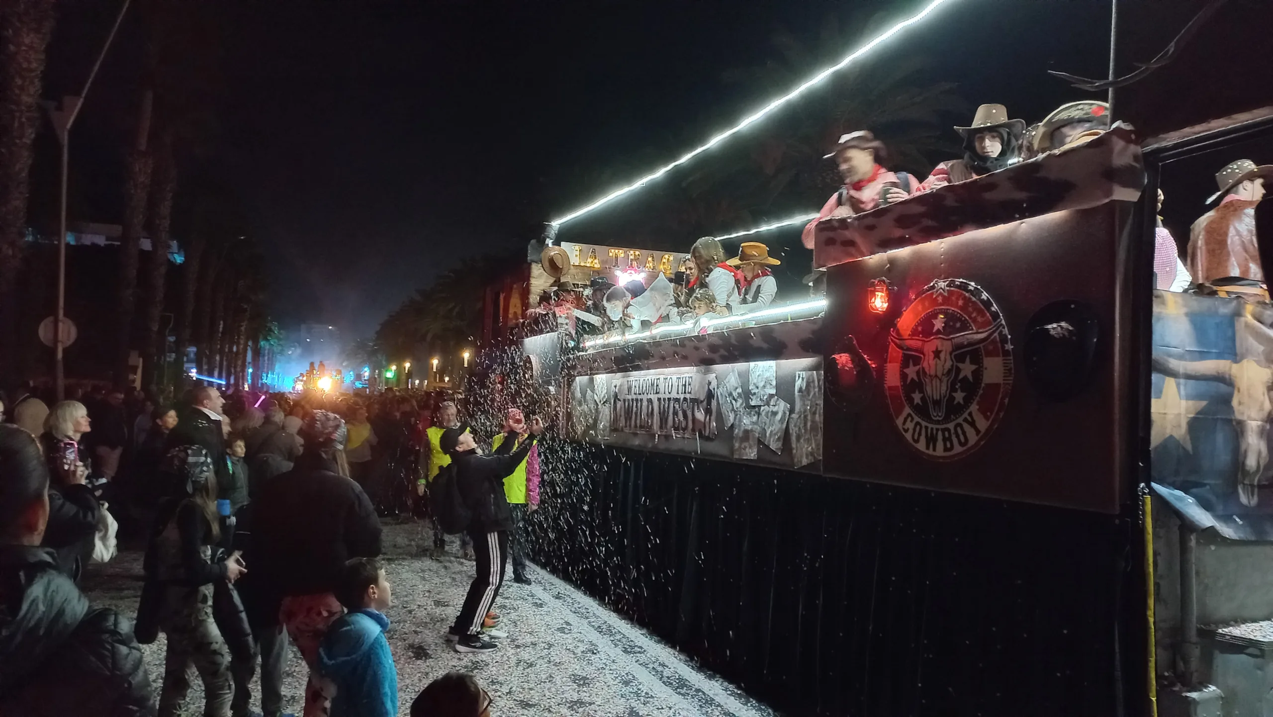 Cerca de 4.000 personas y 28 carrozas han desfilado este sábado -a partir de las 19.00 horas-por el paseo Jaume I y el centro de Salou durante la celebración del Cós Blanc, un anticipo del carnaval, en el que una lluvia de 30 toneladas de confeti biodegradable ha ‘bañado’ a los alrededor de 50.000 asistentes, según datos del Ayuntamiento.
