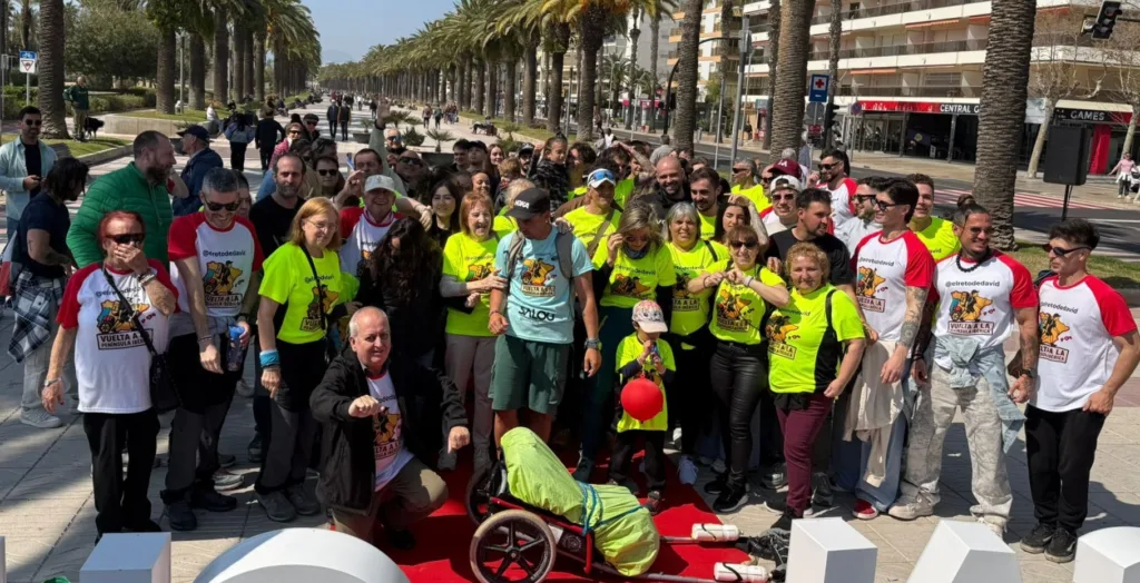 David Giménez ha llegado a Salou este domingo al mediodía después de recorrer a pie la península ibérica durante 256 días. A las 12.10 horas, visiblemente emocionado, ha hecho su aparición en el paseo Jaume I, donde le esperaban unas 100 personas para felicitare por la consecución de este reto.