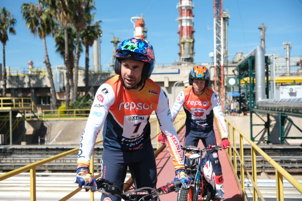 Els pilots del Repsol Honda Team Toni Bou i Gabriel Marcelli han visitat aquest divendres el complex industrial de Repsol a Tarragona, en la vigília de la darrera prova del campionat del món de X-Trial, que se celebrarà demà a la CaixaBank Tarraco Arena.