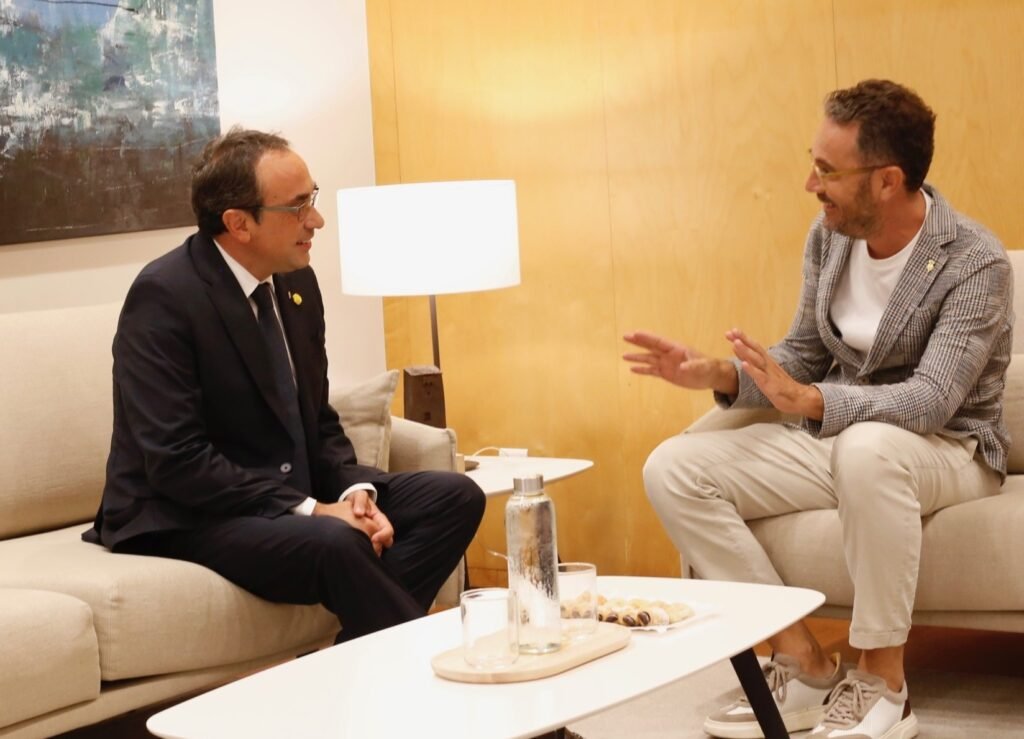El presidente del Parlament y Pere Segura, durante su encuentro en el Ayuntamiento de Vila-seca