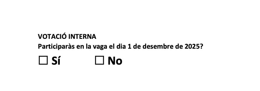 La papeleta para participar contendrá una sola pregunta: ¿Participarás en la huelga del 1 de diciembre de 2025? Sí o no. El voto será secreto y la urna estará custodiada por miembros de la junta de personal y el comité de empresa. El resultado se hará público días después de la consulta.