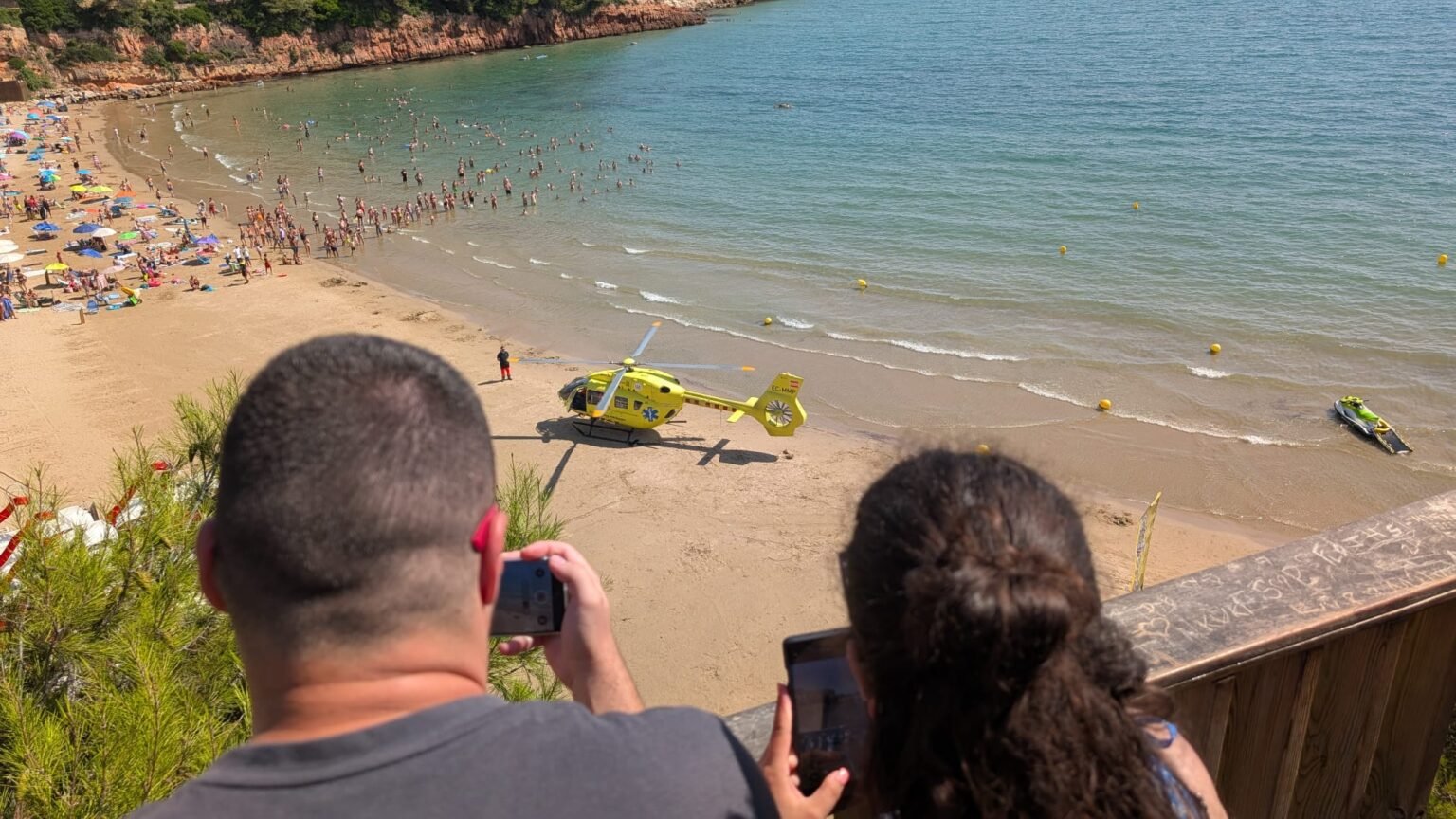 Hasta el lugar se han desplazado socorristas de Salou, efectivos de la Policía Local y del Sistema d’Emergències Mèdiques (SEM). El helicóptero medicalizado ha aterrizado en la arena.
