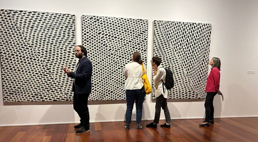 La exposición, comisariada por Bernat Puigdollers, se inicia con tres pinturas de inicios de la década de los sesenta, y, a partir de ellas, el recorrido se va construyendo como una de sus obras, donde cada trazo conduce al siguiente, tejiendo una red de relaciones.